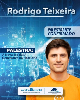 Com uma abordagem prática e provocadora, Rodrigo irá mostrar como a IA generativa pode ir além dos assistentes virtuais e se tornar uma aliada estratégica na experiência do hóspede, no atendimento multicanal e na otimização de processos operacionais dos hotéis.
